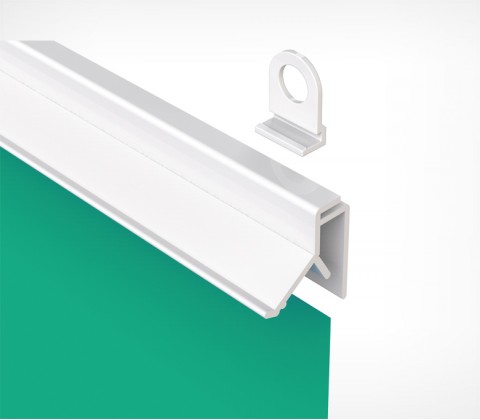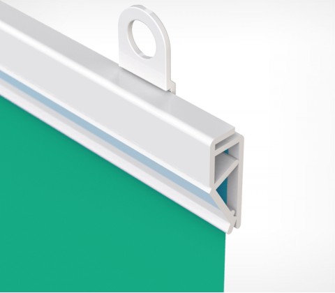 Пластиковый профиль CLICKER для подвешивания рекламных постеров, напечатанных на бумаге, баннере. Стандарные размеры 600 мм, 1000 мм и 1200 мм, возможен другой размер под заказ. Работает по принципу зажима. Быстро и прочно фиксирует вывеску сверху и снизу, в основном используеться для подвешивания плакатов толщиной максимум 0,7мм. Отдельно необходимо приобрести крючки для подвешивания.
