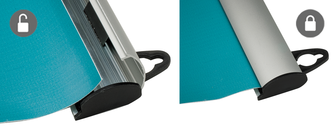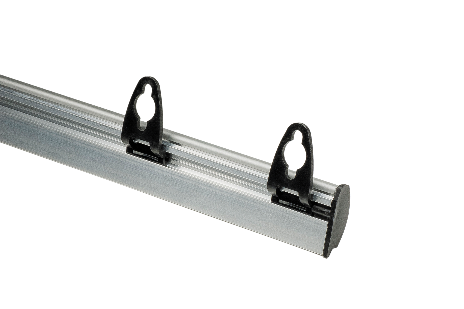 Комплектуется двумя алюминиевыми профилями с торцевыми пластиковыми крючками для подвешивания профиля.