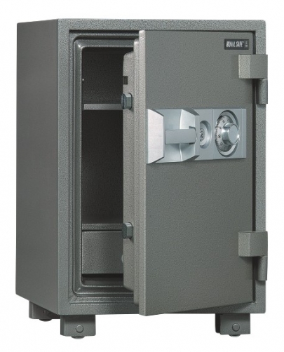 Сертифицированный пожаростойкий сейф. Имеет двойные стенки, между которыми расположен пенобетон. Наличие активных и пассивных ригелей затрудняет вскрытие сейфа методом воздействия на петли. Наружная дверь оборудована подпружиненным ригельным запирающим механизмом, который блокируется двумя ключевыми замками. Внутри сейфа - выдвижное внутреннее запираемое отделение (кассовое отделение) и одна съемная полка.